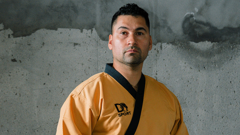Competidora de taekwondoEntrena con equipamiento DoSport